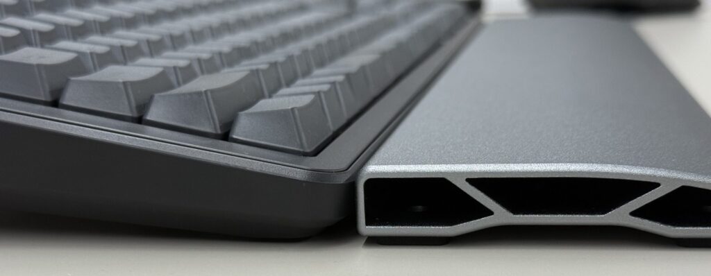 最終的には、純正品ならではのフィット感と品質、何より所有欲を満たしそうな見た目に期待して「REALFORCE アルミリストレスト」を選びました。